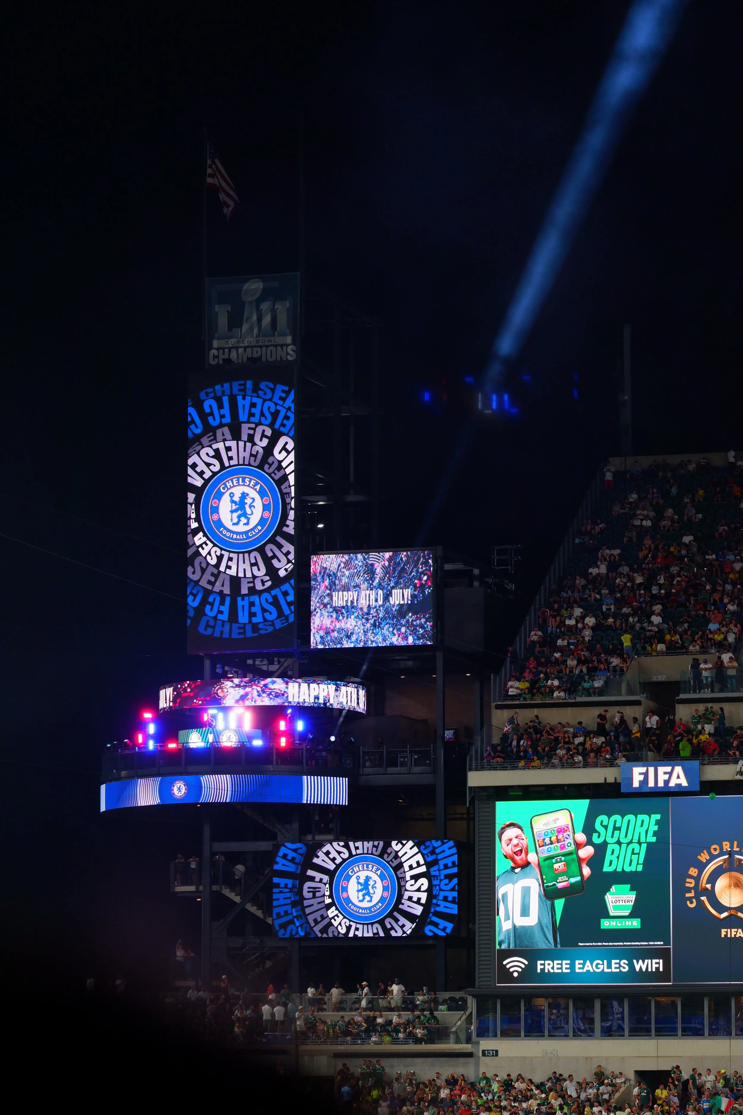 Photography / Game / Soccer Chelsea vs. Palmeiras / ABOUTChelsea’s 2–1 victory over Palmeiras lit up Lincoln Financial Field on Independence Day, blending world-class football with the historic energy of America’s birthplace. PREV NEXT